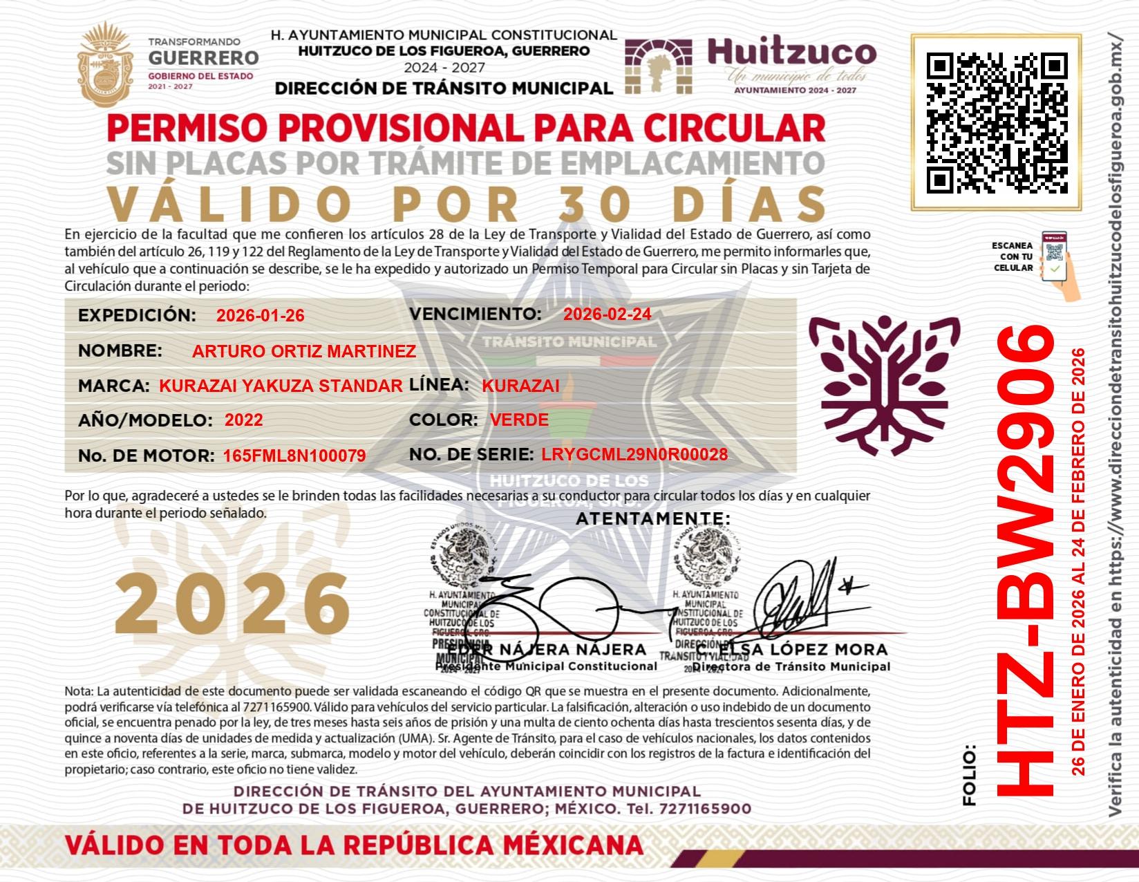 🔹Nombre del titular: ARTURO ORTIZ MARTINEZ